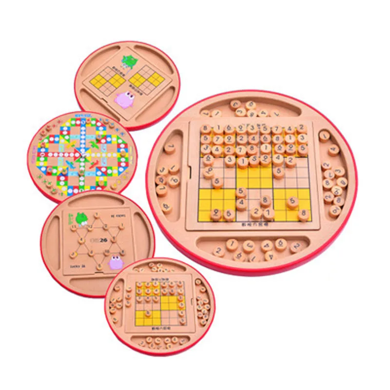 Children's parent-child interactive game wooden flying chess multifunctional Sudoku Jiugongge early