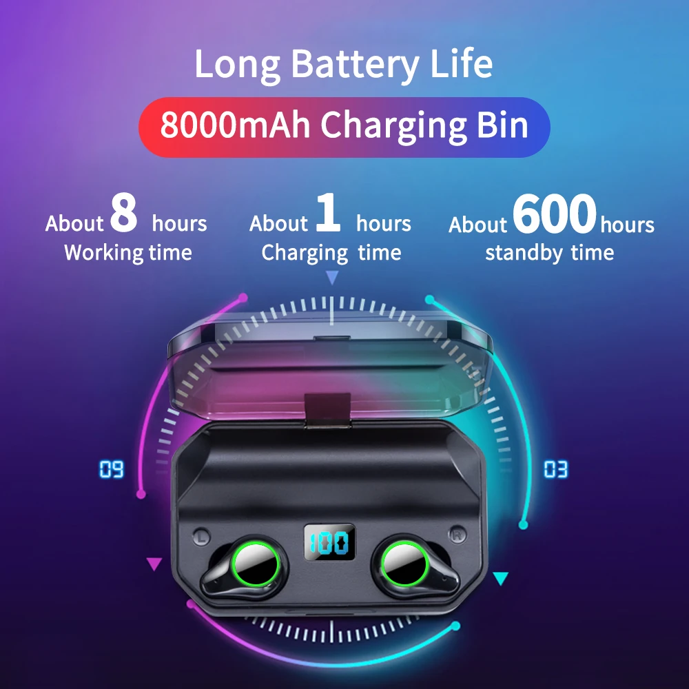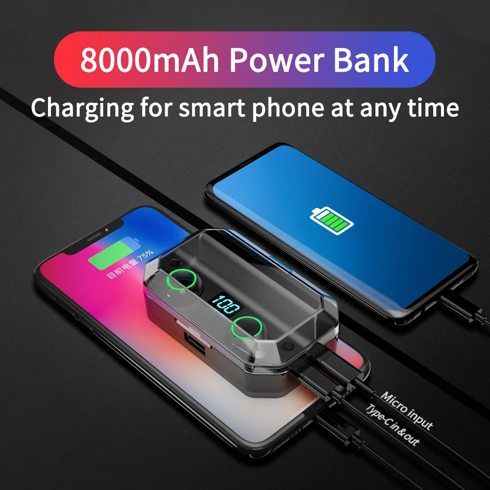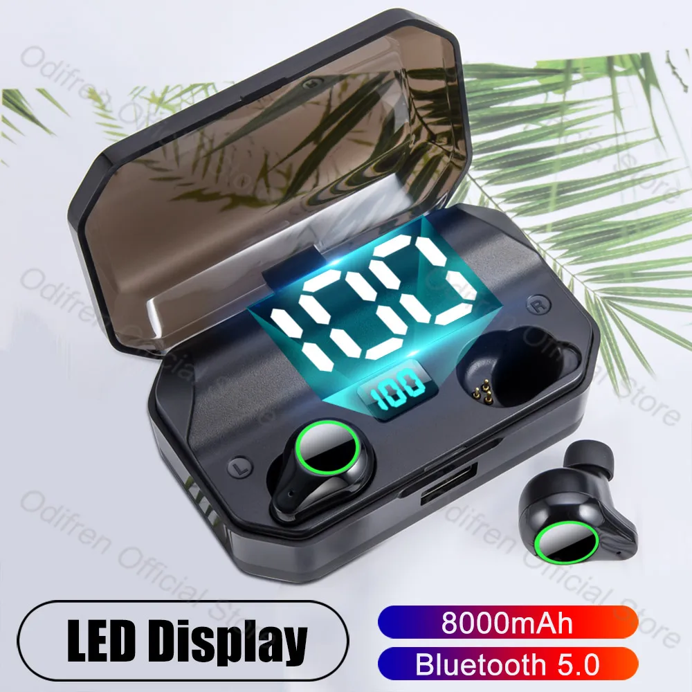 Bluetooth Earphones In-ear Wireless Earphone Waterproof Earbuds LED Display With Mic 8000 mAh Charg