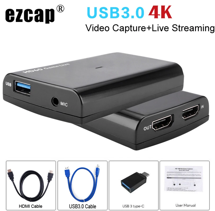 4K 1080P 60fps HDMI Phone Game Capture Card Mic Video Record Box for PS3 PS4 Xbox Camcorder Twitch