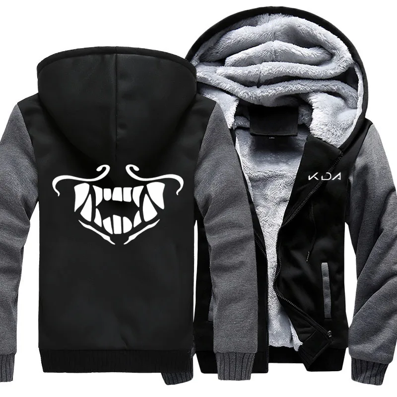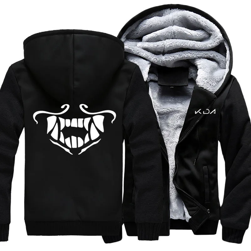 Men's Thicken Hoodie Game KDA K/DA Akali Mask Printed Zipper Jacket Sweatshirts Coat Unisex Adults