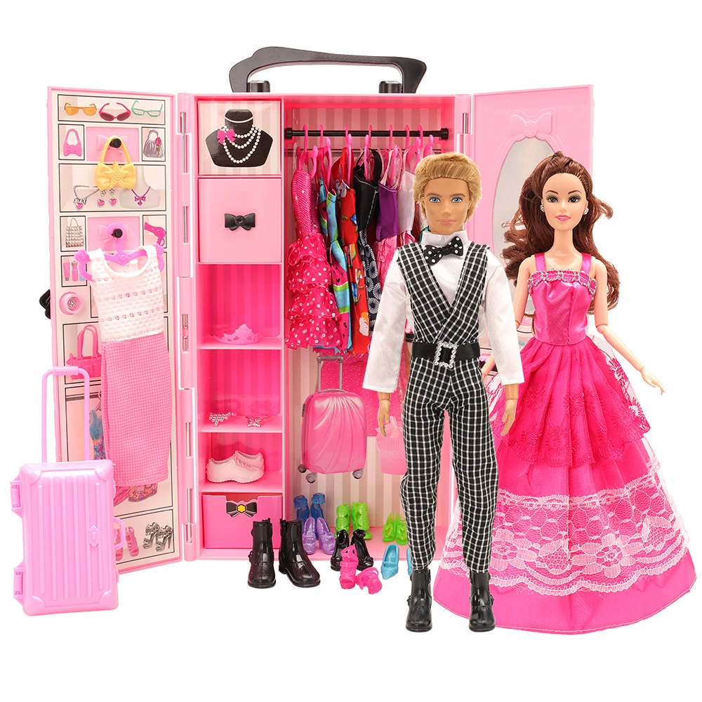 Newest Fashion 43 Items/set Dollhouse Furniture= wardrobe + 42 Dolls accessories Clothes for barbie